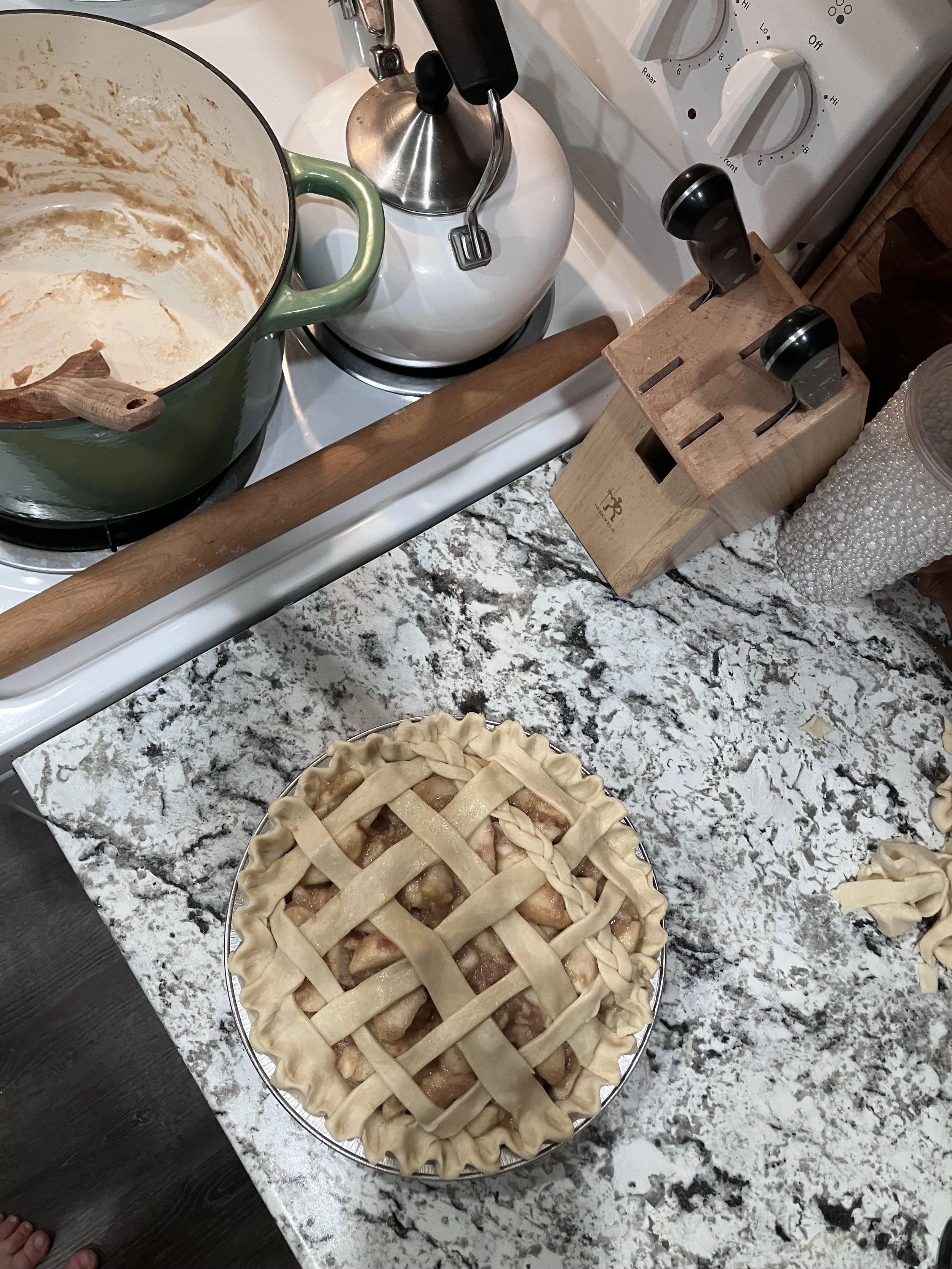 This was a flaky, delicious crust and the filling was flavorful and filled with the spices you expect in an apple filling without being spice forward! Pleasant. Mouthwatering. And the ice cream was the perfect topping!