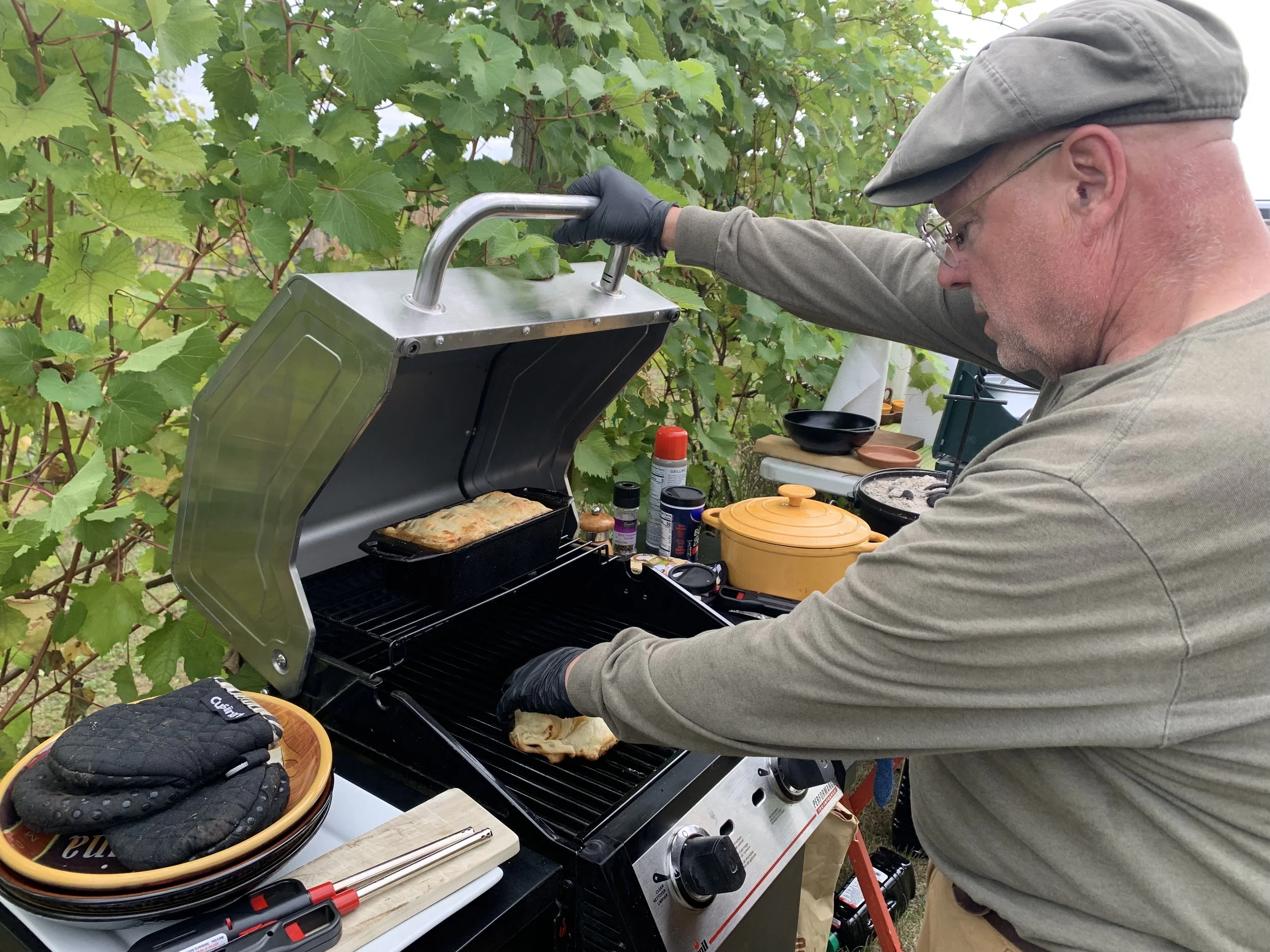 The wine we shared at this vineyard get together was provided by Vicki. The wine in these bottles was made by Bryan, the grapes were grown by him, cultivated for many years with skill and patience. He had a passion for the vines, the wine it produced, and the people that it brought together. At this Local Grower’s meal we shared Buzzy’s Blend, Classic Cherry, Big Red, Rhubarb Cherry, and also a bottle from Wolf Creek wines from western North Dakota, who used Dancing Loon’s grapes to make their wine.